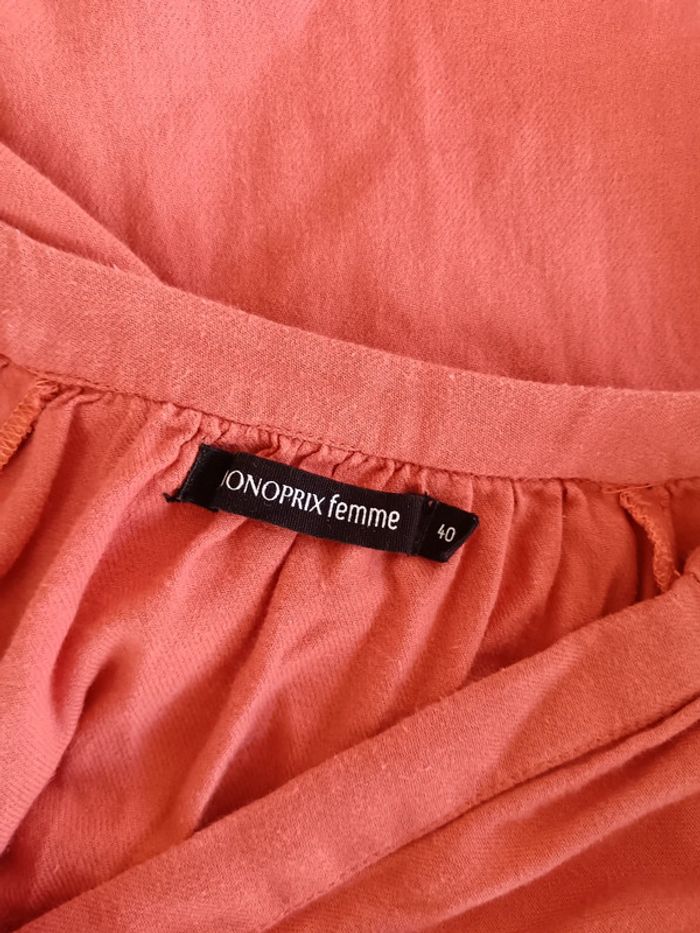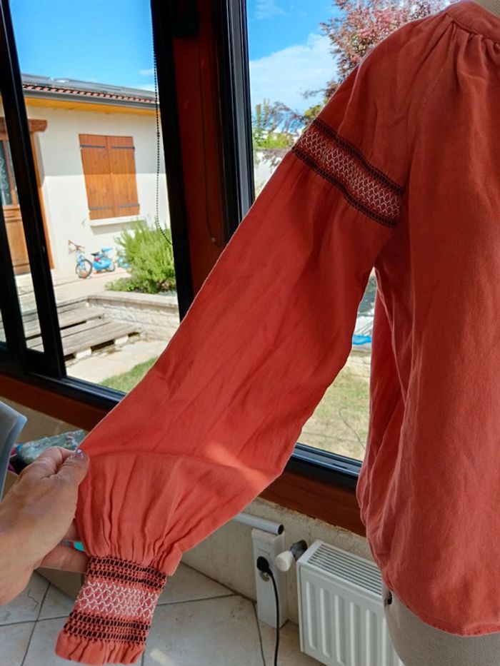 Blouse Monoprix terracotta taille 40. Manches longues élastiquées aux poignets. Motifs brodés aux manches. En parfait état. Mes autres articles femme L/40 par ici : #mmeloliie78femmeL40 Remises automatiques sur les lots, profitez-en! 👍 Envois rapides via Mondial Relais et Vinted Go 📦🚀