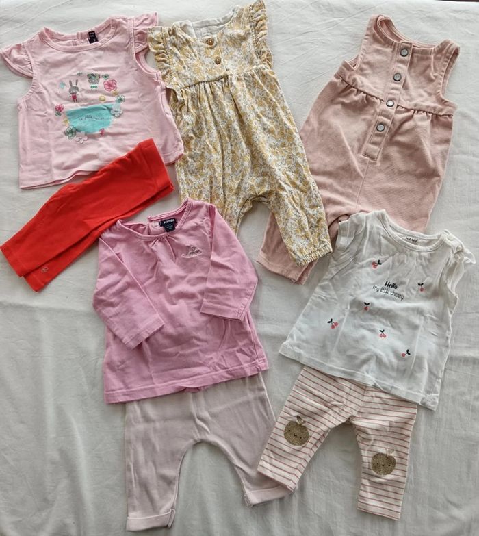 Lot printemps été 3 mois : 2 combinaisons (C&A, Kiabi) 3 ensembles tshirt/legging (2 ensembles Kiabi, 1 dépareillé Sergent Major et Obaïbi) Le tout est en très bon état. Mes autres articles bébé fille 3 mois par ici : #mmeloliie78bébéfille3mois Remises automatiques sur les lots, profitez-en! 👍 Envois rapides via Mondial Relais et Vinted Go 📦🚀