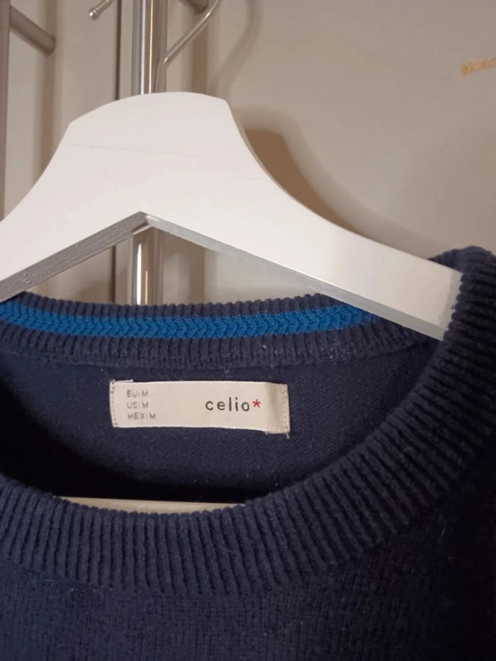 Pull de Noël bleu marine, broderie blanche "Dear Santa" Celio taille M. Peu porté, en parfait état.