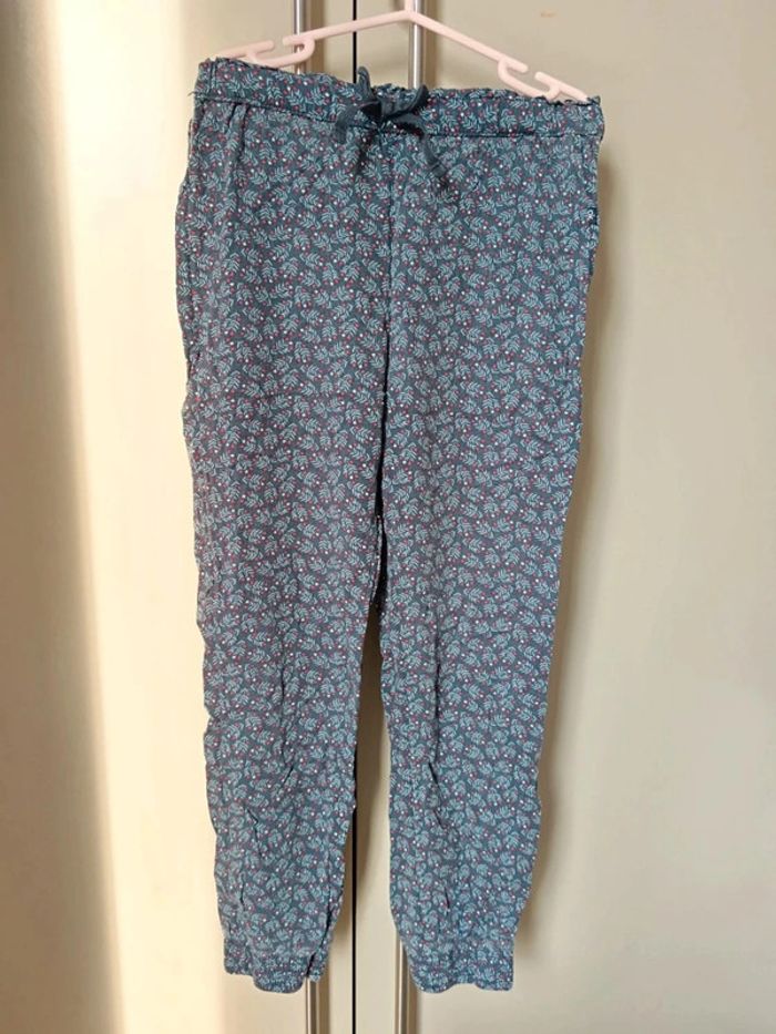 Pantalon fluide imprimé Obaïbi taille 10 ans. Taille élastique reglable par l'intérieur. En très bon état