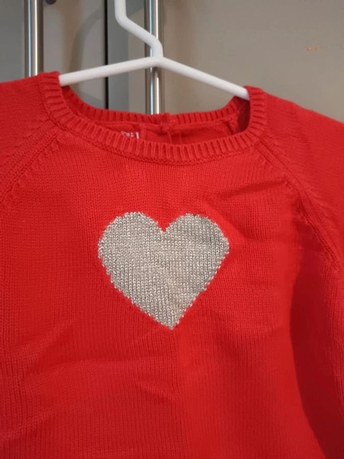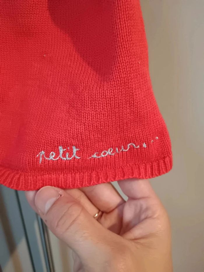 Pull sans manches en fine maille rouge, motif coeur argenté, DPAM taille 24 mois. En très bon état
