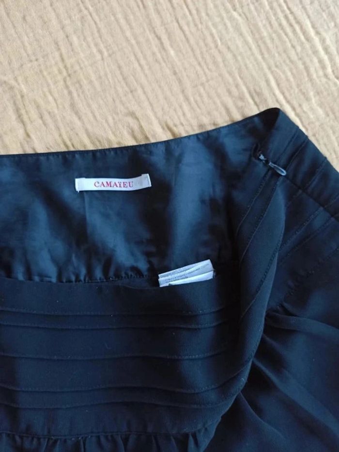Jolie jupe noire avec doublure intérieure en dentelle, Camaïeu taille 36. Fermeture invisible + bouton. Bouton de rechange fourni. Peu portée, en parfait état.