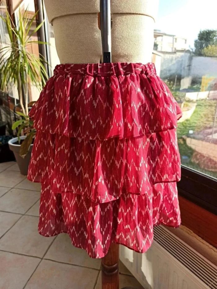 Jolie jupe à volants Gap taille 36, couleur bordeaux et blanc. Taille elastique, doublure intégrée. Portée une fois, comme neuve.