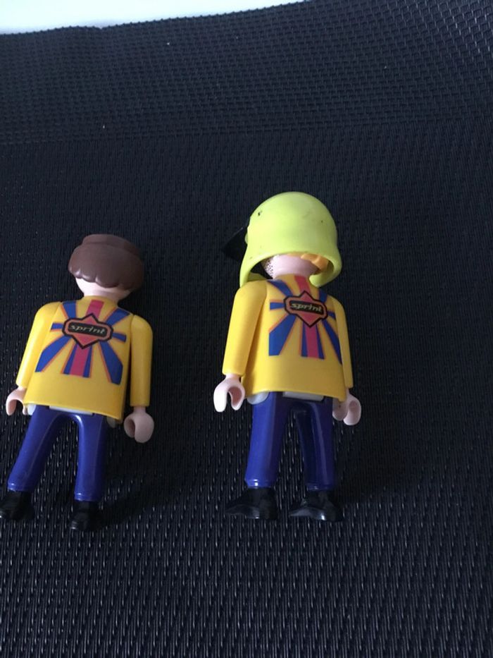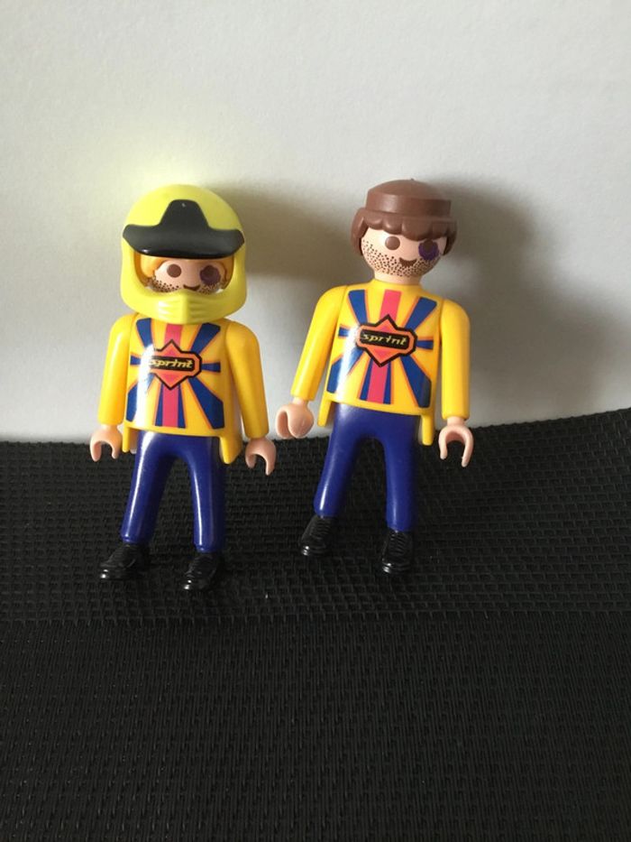 Playmobil lot 2 figurines pilote moto sur circuit avec coquard motard. Bon état général, voir photos. Pour voir toutes mes annonces Playmobil, cliquez sur le lien suivant #playmobilbrocantegames #piecesdetachees #piecesderechange #diorama #custom #collection #colección #citylife #viequotidienne #motor #figuur #figura #figurina #personnage #boneco #vintage #chopper #bikers #motorcycle #motorbike #rider #tetedemort #becane #cross