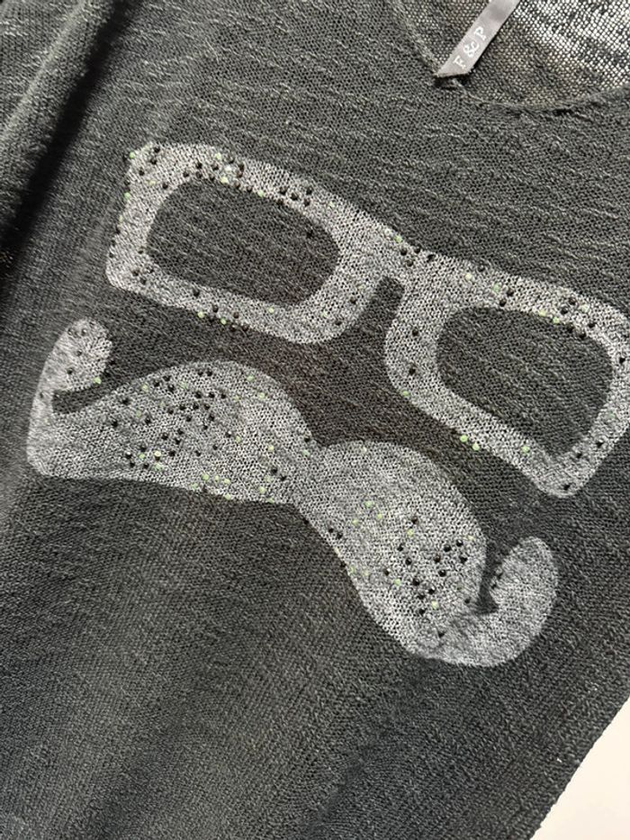 Pull t-shirt manche court femme noir avec moustache lunette taille unique F&P Paillettes presque que toutes partie