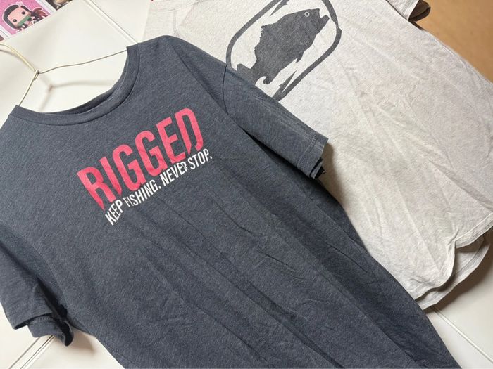 Lot de 2 t-shirts taille m de pêche du youtubeur jon.b keep fishing never stop