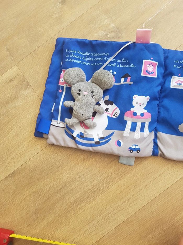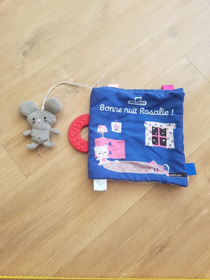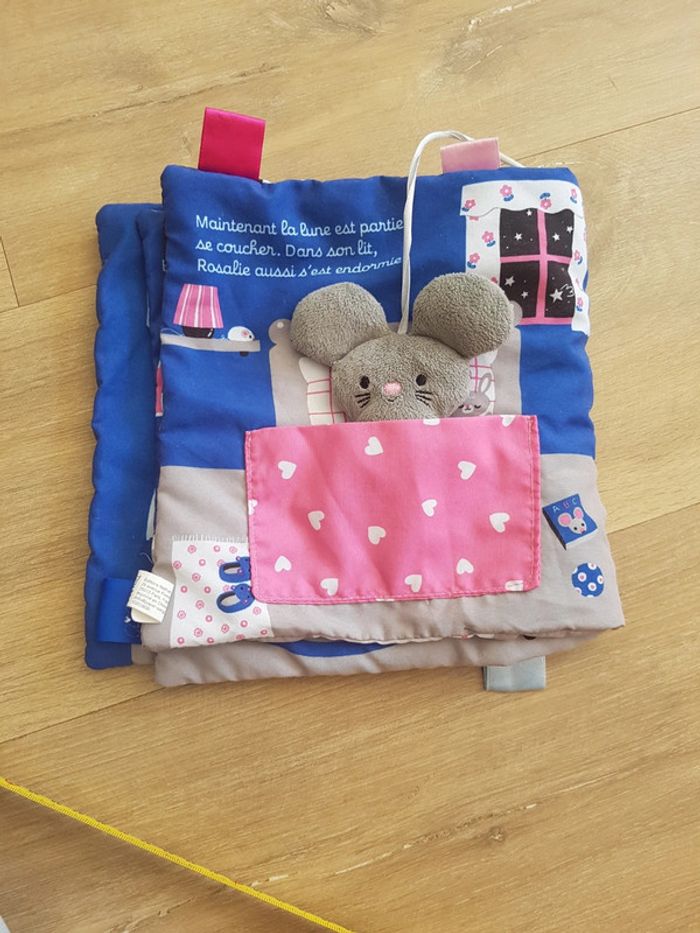 Jolie livre tissus petit Nathan "Bonne nuit Rosalie" avec petite souris à promener pendant l'histoire #aline_38_peluche