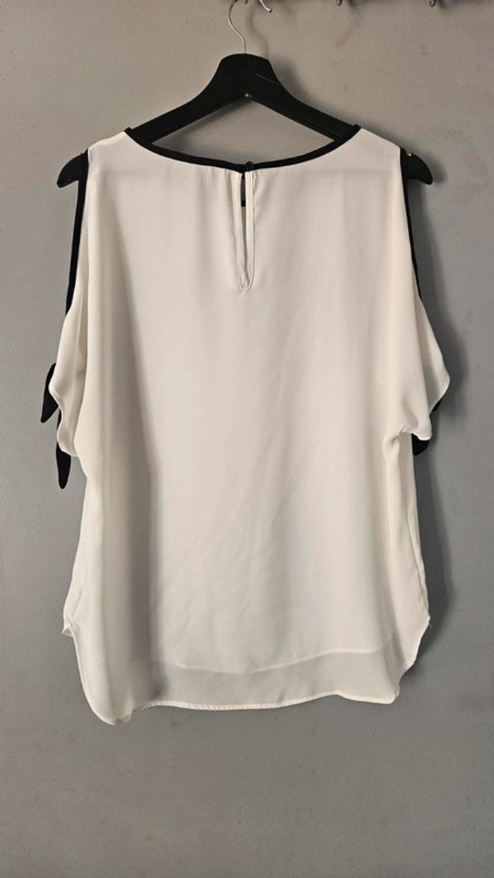 Blouse Etam épaules dénudées blanc/ noir - T36 - photo numéro 3