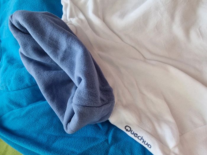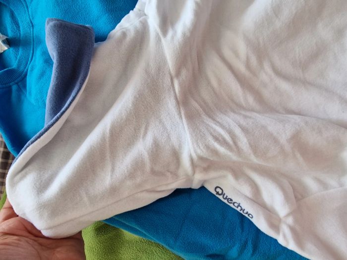 Lot de pulls polaires Quechua dont 1 col roulé neuf. Les 2 autres ont été portés, particulièrement le vert qui présente plusieurs bouloches de lavage