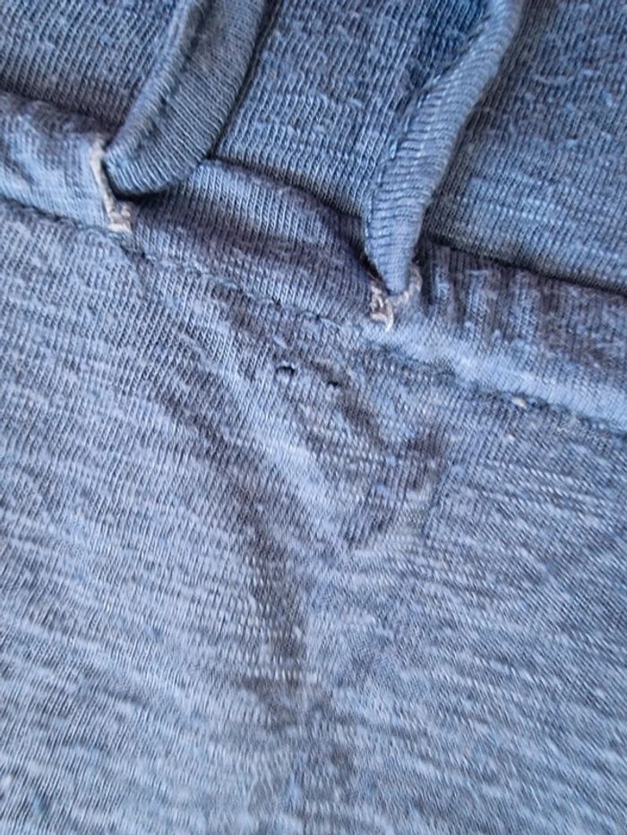 Haut des manches avec détails ajoutés Quelques petits defauts (tout petit trou au dessus de la ceinture et bouloches de lavage)