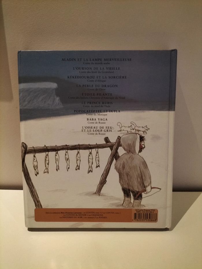 Magnifique livre dans la collection mon premier Larousse Les contes du monde. Très bel ouvrage cartonné plus de 200 pages pour 9 comptes classiques ou pas, que sont : Aladin et la langue merveilleuse, L'ourson de la vieille, Kékédiourou et la sorcière, La perle du dragon, Etoile filante, Le prince Rubis, Popocatéptel et Ixtla Baba Yaga, L'oiseau de feu et le loup gris. Vous pourrez donc découvrir : un conte du monde arabe, un conte des Inuits du Groenland, un conte d'Afrique, un conte de Chine, un conte des Indiens cheyenne d'Amérique du Nord, un conte du nord de l'Inde, un conte du Mexique, et deux contes de Russie... Livre en très très bon état voir photos.