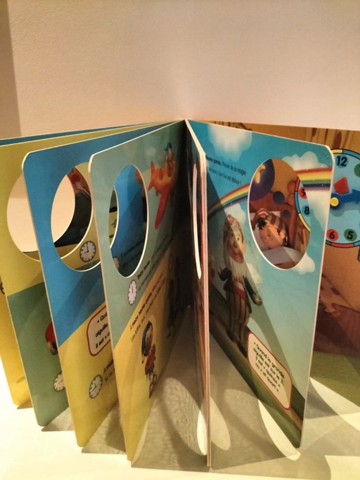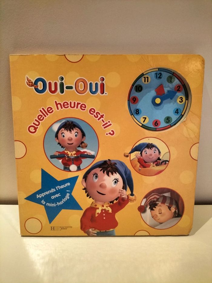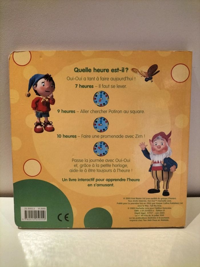 Apprends l'heure avec la mini horloge, des notions et des repères de temps tout au long de la journée avec Oui-Oui... Grand format 25 cm sur 25 cm environ, en page cartonnée En bon état avec une usure légère de la couverture