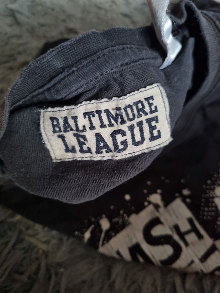 T-shirt noir imprimé (légèrement craquelé),taille 9ans marque Baltimore League de La redoute, mini trou voir photo.
