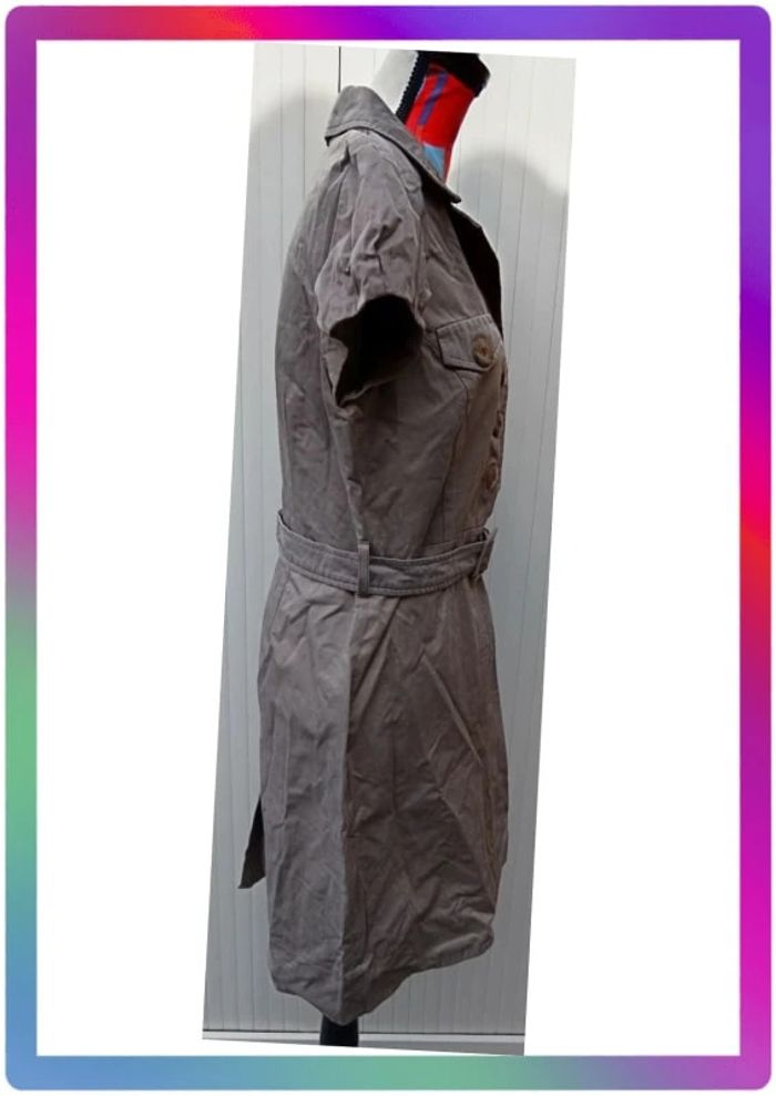 Avec ceinture, bouton, fermeture éclair sur le côté, fausses poches boutonnées. Polyamide. Aisselles à aisselles 46 cm, épaule à épaule 42 cm, longueur 92 cm #pitou83710femmeXL N' hésitez pas à choisir votre point relais pour les frais de port ! J'ai tout les points relais