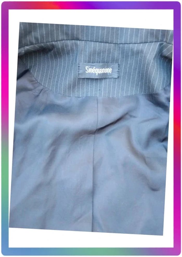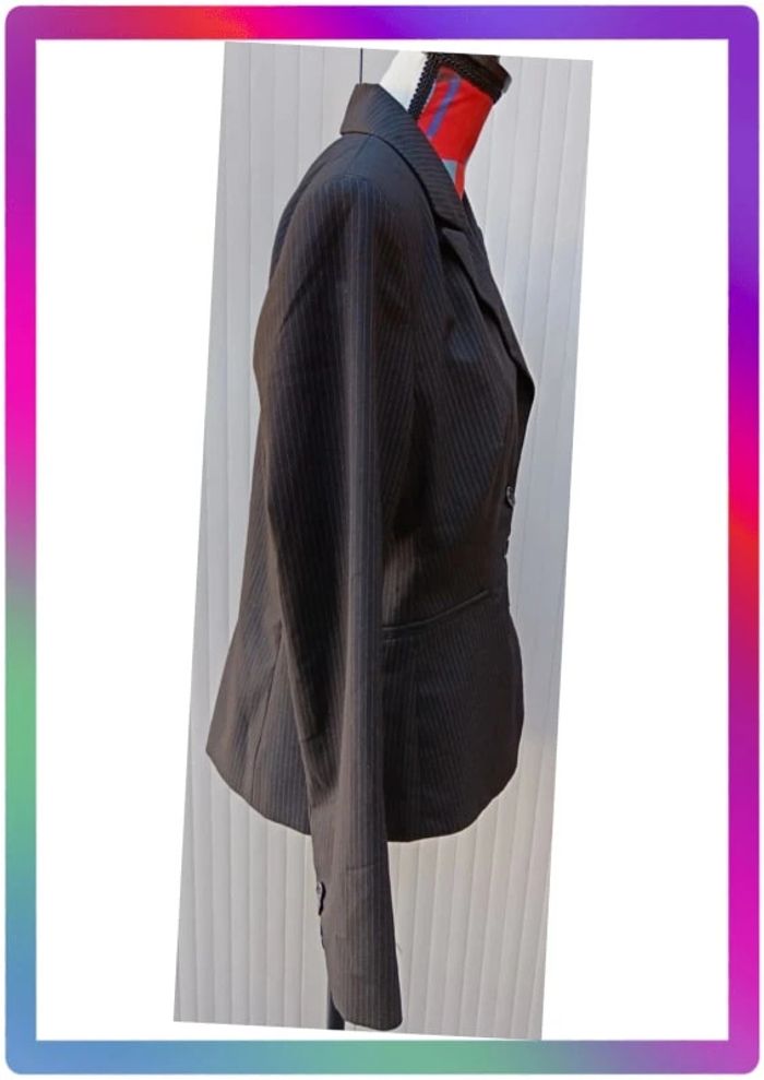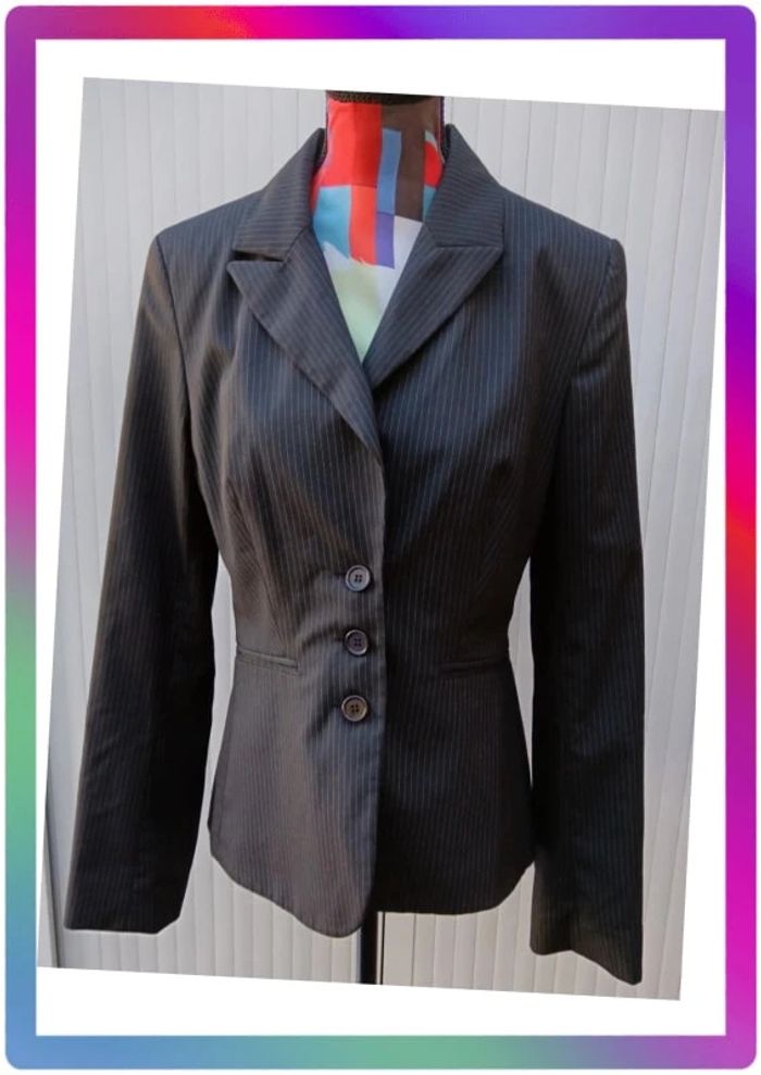 Épaulettes, 3 boutons, 2 fausses poches.4 boutons à chaque manche. Fente en bas du dos. Rayures verticales. Doublure acétate. Aisselles à aisselles 46 cm, épaule à épaule 40 cm, longueur 58 cm. #pitou83710femmeL N' hésitez pas à choisir votre point relais pour les frais de port ! J'ai tout les points relais