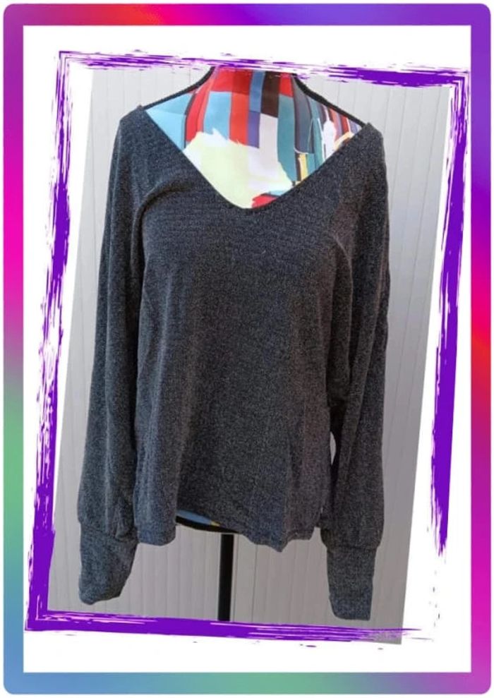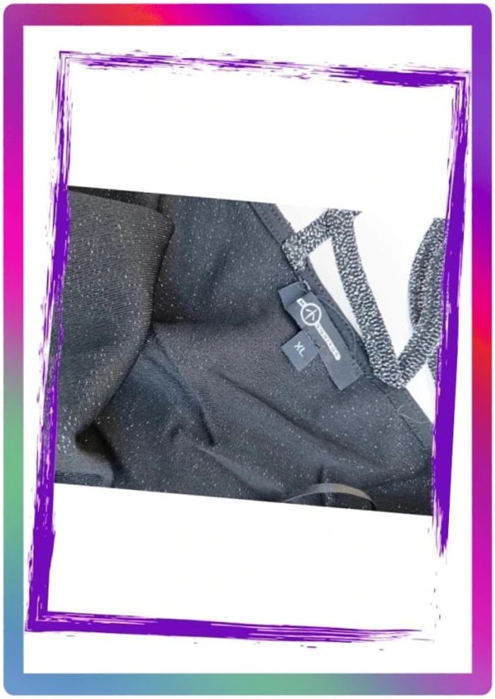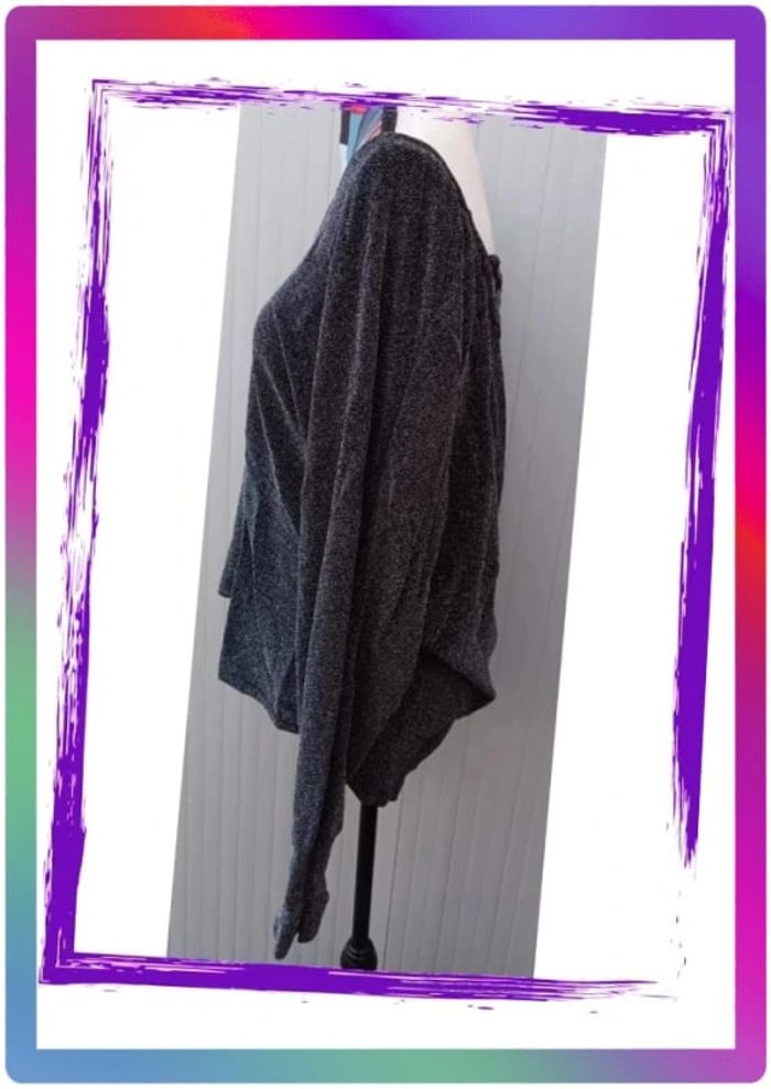 Paillettes argentées, dos nu, resserrer aux poignets. Aisselles à aisselles 67 cm. Polyamide , fil métallisé #pitou83710femmeXL N' hésitez pas à choisir votre point relais pour les frais de port ! J'ai tout les points relais