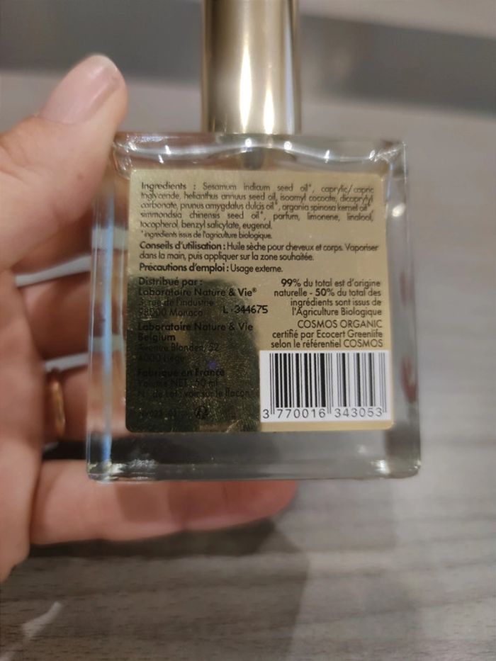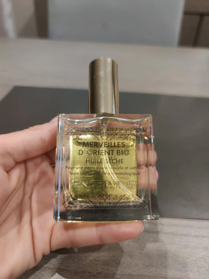 Huile sèche merveille d'orient ingrédients naturels 50 ml . Achetées chez therascience 29.90€ et pas utilisée