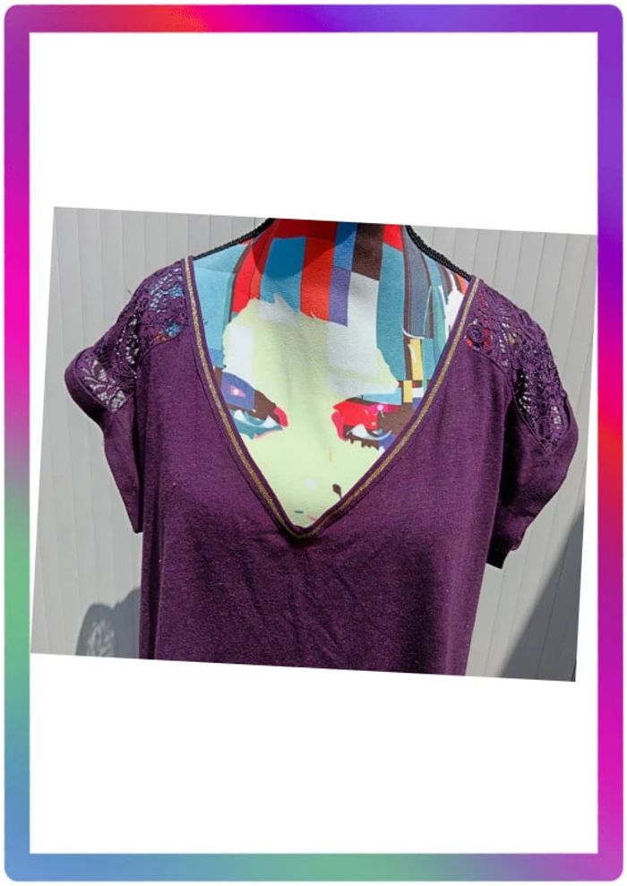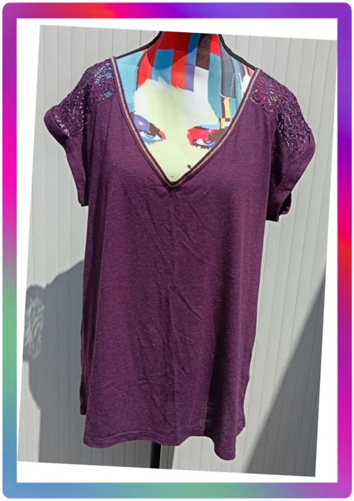 Manche et haut du dos transparent, paillette doré, col V. Fibre métallique Aisselle à aisselle 52 cm #pitou83710femmeL N' hésitez pas à choisir votre point relais pour les frais de port ! J'ai tout les points relais