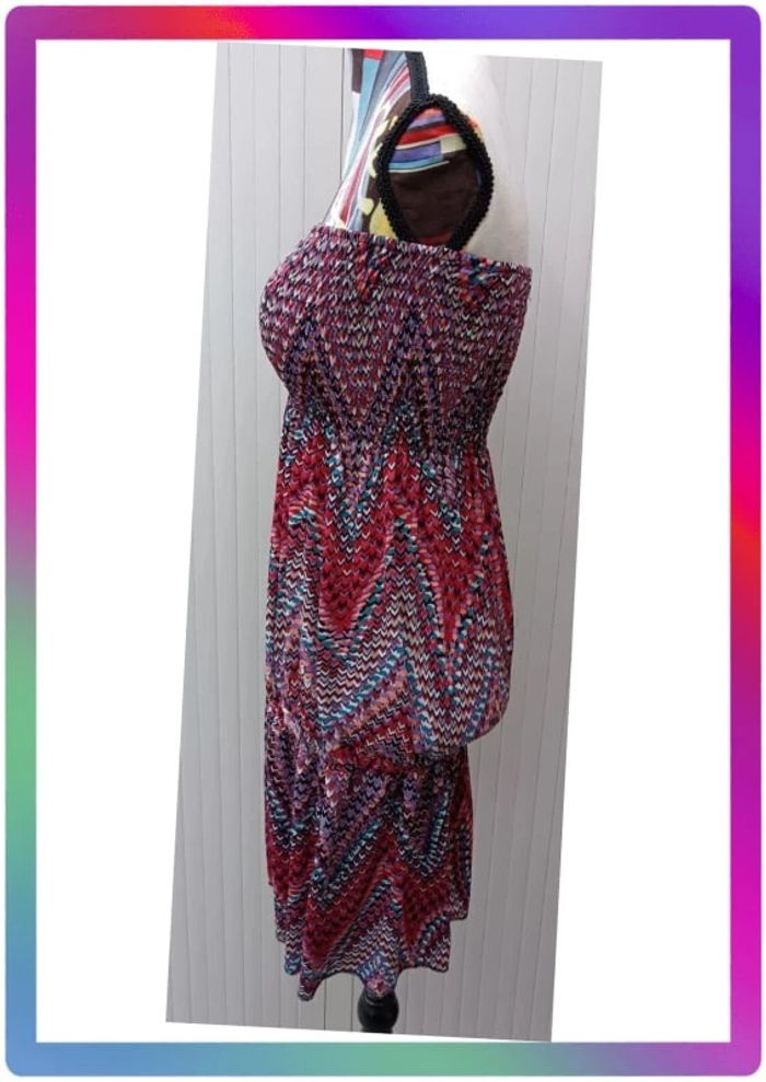 Poitrine et taille élastique, épaules dénudées. Aisselles à aisselles non étirée 28 cm, aisselles à aisselles étiré 44 cm, taille 40 cm, longueur 73 cm #pitou83710femmeL N' hésitez pas à choisir votre point relais pour les frais de port ! J'ai tout les points relais