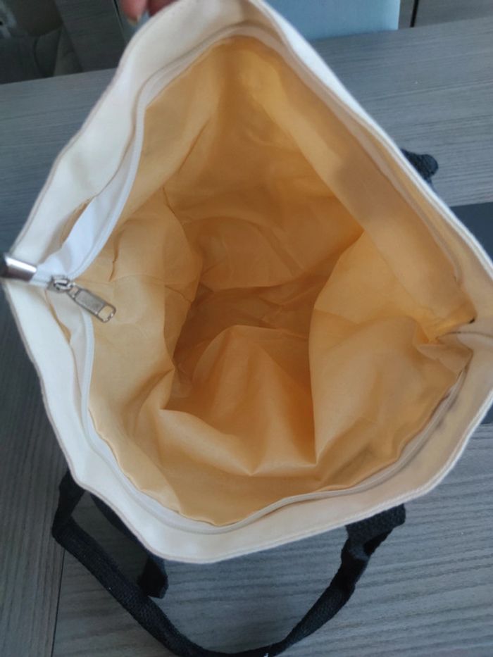 Sac fourre-tout avec fermeture éclair en tissu n'a servi qu'une seule fois. 34x32x5 cm