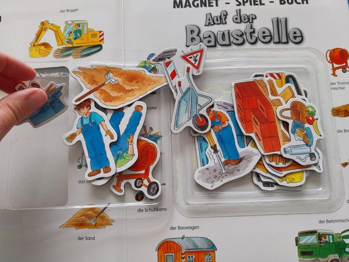 Livre avec aimants Thème du chantier En allemand Magnet spiel buch Auf der baustelle