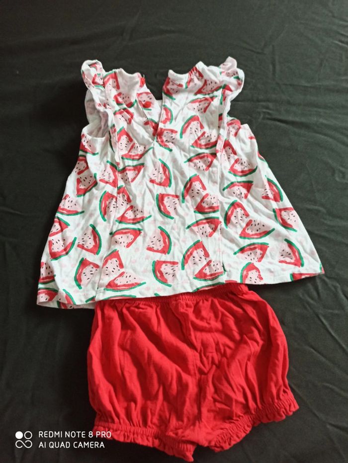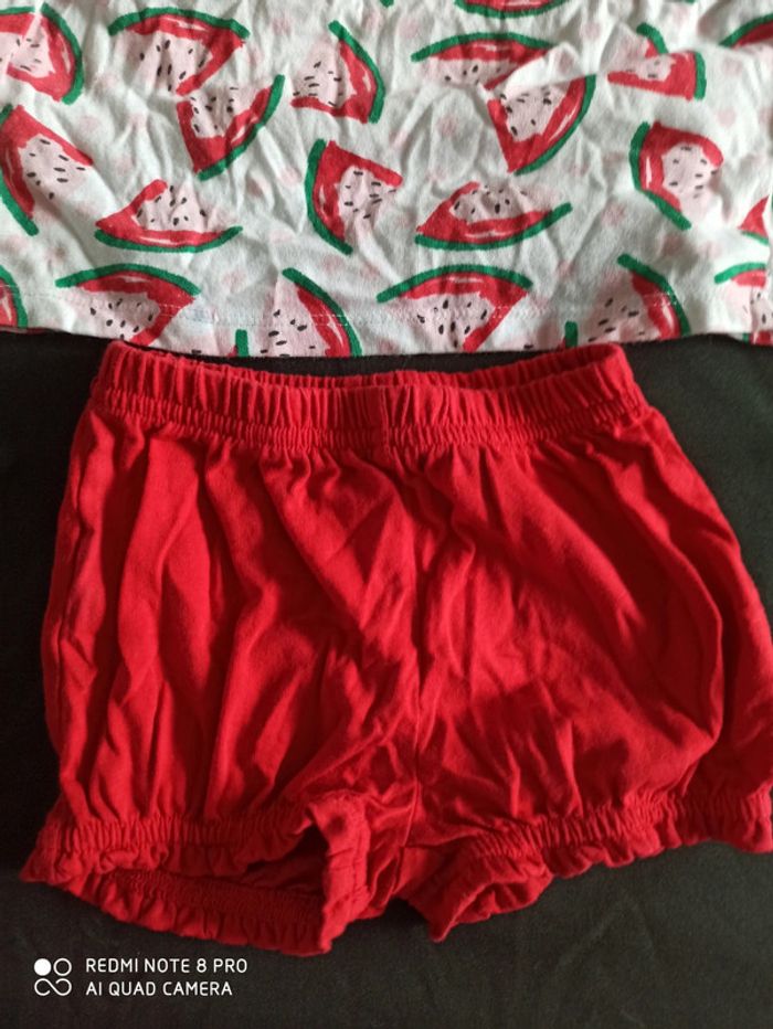 Short rouge et haut blanc à pastèques. Taille 18 mois