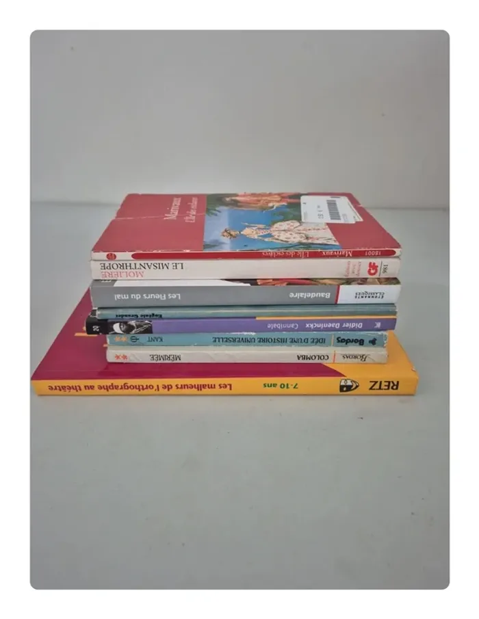 Lot de 8 livres Les malheurs de l'orthographe au théâtre Merimée Idée d'une histoire universelle Cannibale Eugénie Grandet Les fleurs du mal Le misanthrope L'île des esclaves Livres en état satisfaisant, ils ont vécu et peuvent avoir des traces de crayons, mais sont parfaitement lisibles, voir état sur les photos Nombreux livres ici : #LivresToysandgamed Expédition en moins de 24h sauf : - Mercredi pas d'envoi - Mondial Relay sous 48h - Pas d'envoi Vinted Go L5
