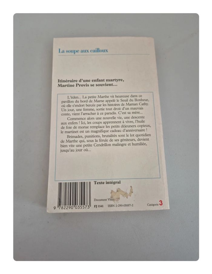 Livre de Martine Provis, la soupe aux cailloux D'autres livres disponibles ici : #LivresToysandgamed 📦 Expédition rapide & protégée : Envoi sous 24h via le transporteur de votre choix (hors mercredi et dimanche – dépôt fermé). Envoi Mondial relay/ In post sous 48h ⚠️ Pas d’envoi via Vinted Go / Homerr