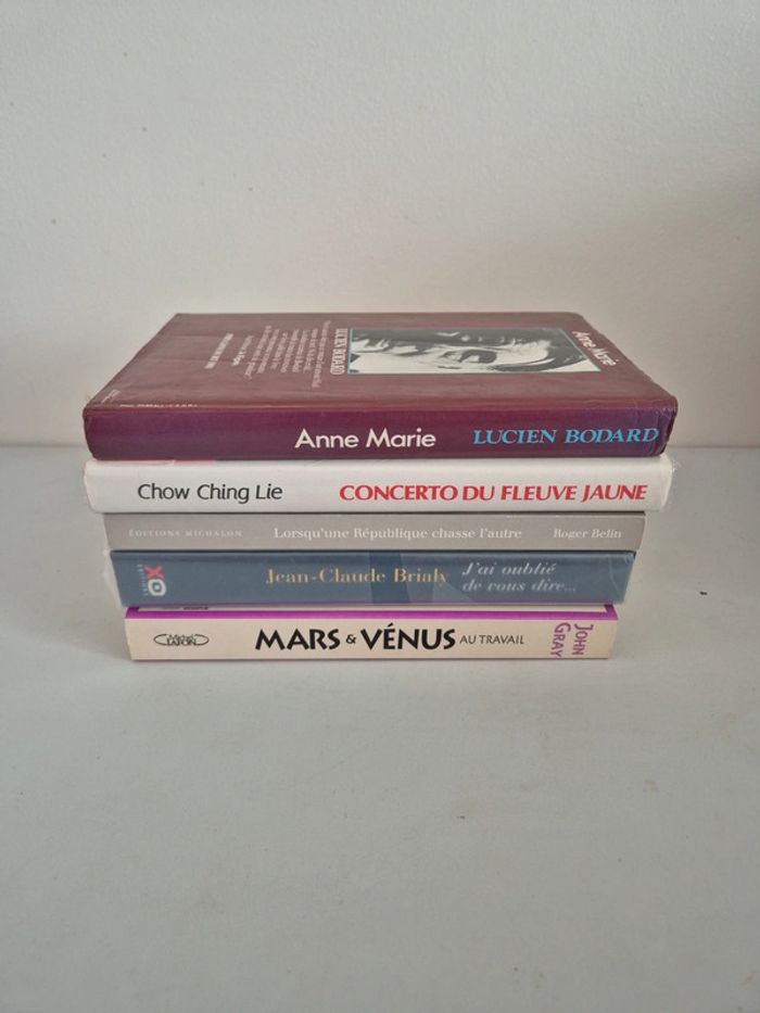 Lot de 5 livres Anne Marie Concerto du fleuve jaune Lorsqu'une République chasse l'autre J'ai oublié de vous dire... Mars & Vénus au travail Voir état sur les photos Nombreux livres ici : #LivresToysandgamed Expédition en moins de 24h sauf : - Mercredi pas d'envoi - Mondial Relay sous 48h - Pas d'envoi Vinted Go L2