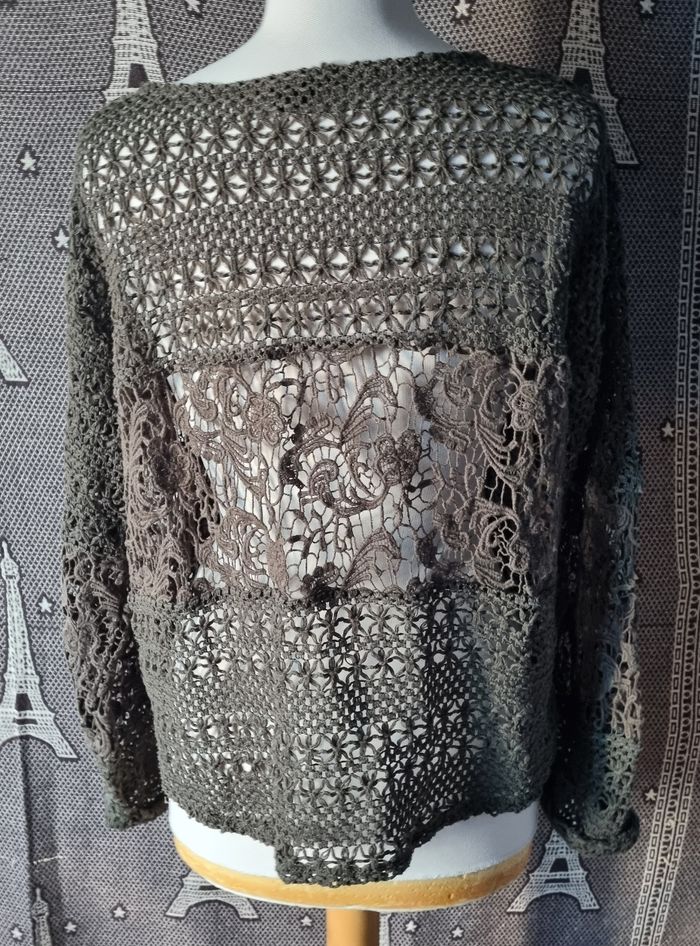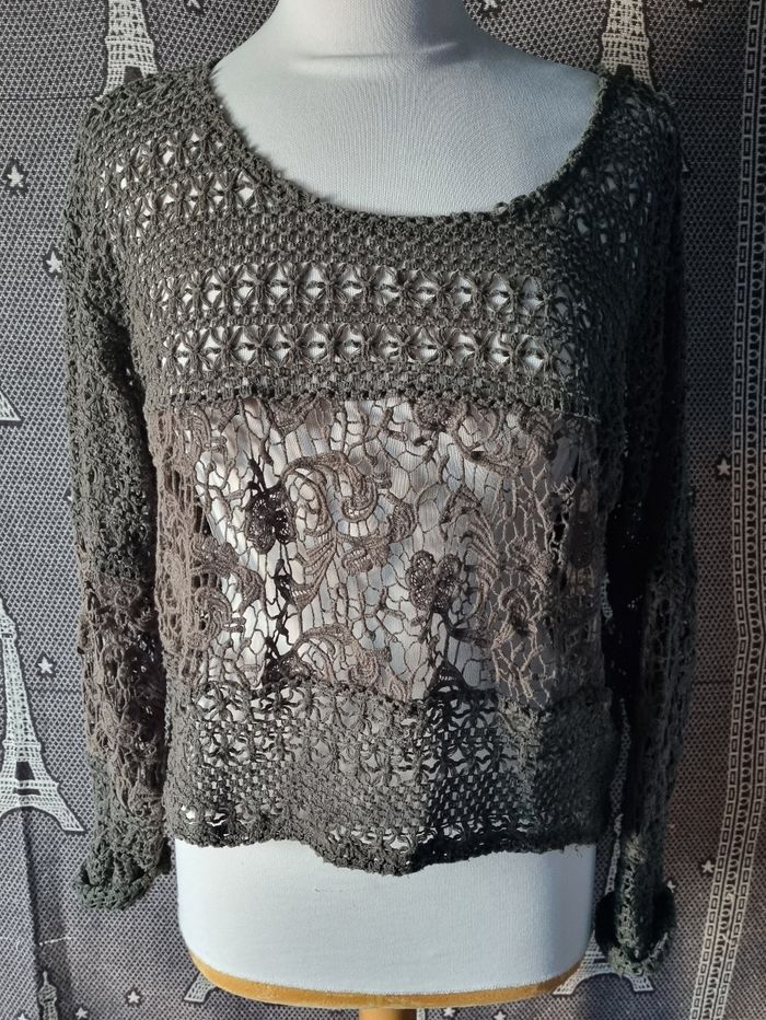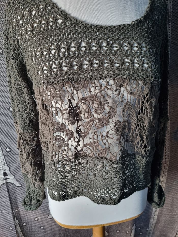 Pull kaki ajouré style crochet taille L - photo numéro 1