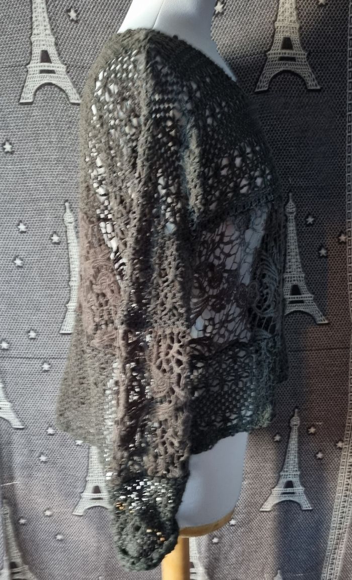 Pull kaki ajouré style crochet taille L - photo numéro 6