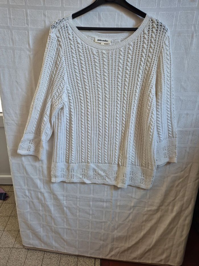 ⬇️mes autres annonces pour femme en taille 40 👉 #cg89femme40 un pull en coton avec plusieurs effets de matière. Il mesure 53 cm aux aisselles et 68 cm de longueur. très bon état - taille 40 - marque grain de malice #pull #sweat #top #graindemalice #blouse