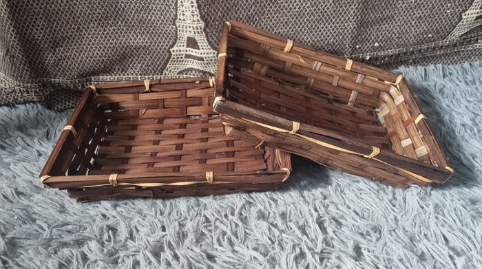 Lot 2 paniers style osier, dimensions en photos, pour mettre du pain,des couverts ou autres rangement.
