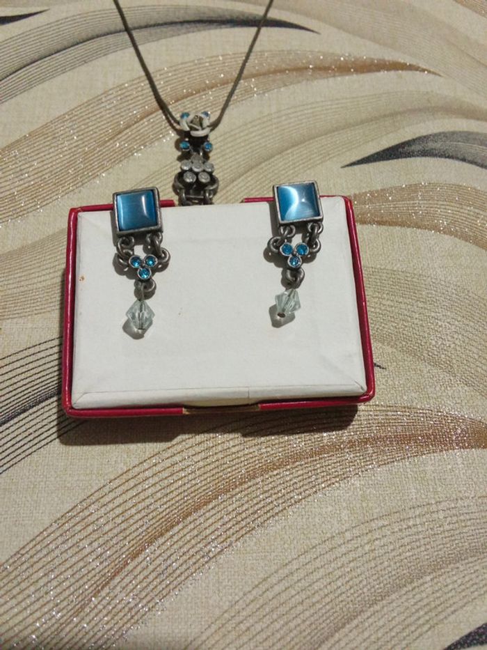 Ensemble collier boucles d'oreilles pierres bleues et motif fleurs - photo numéro 5