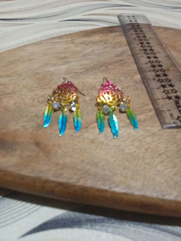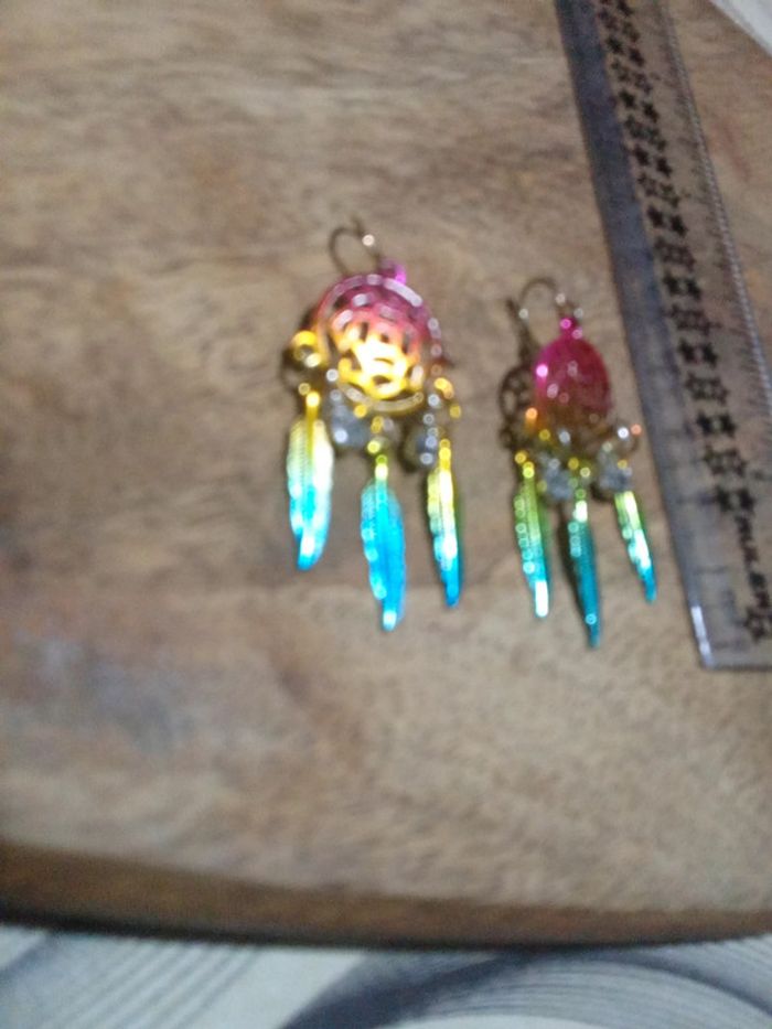 Boucles d'oreilles pendante multicolore attrape rêve - photo numéro 1