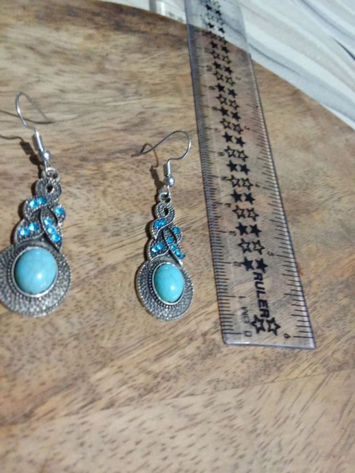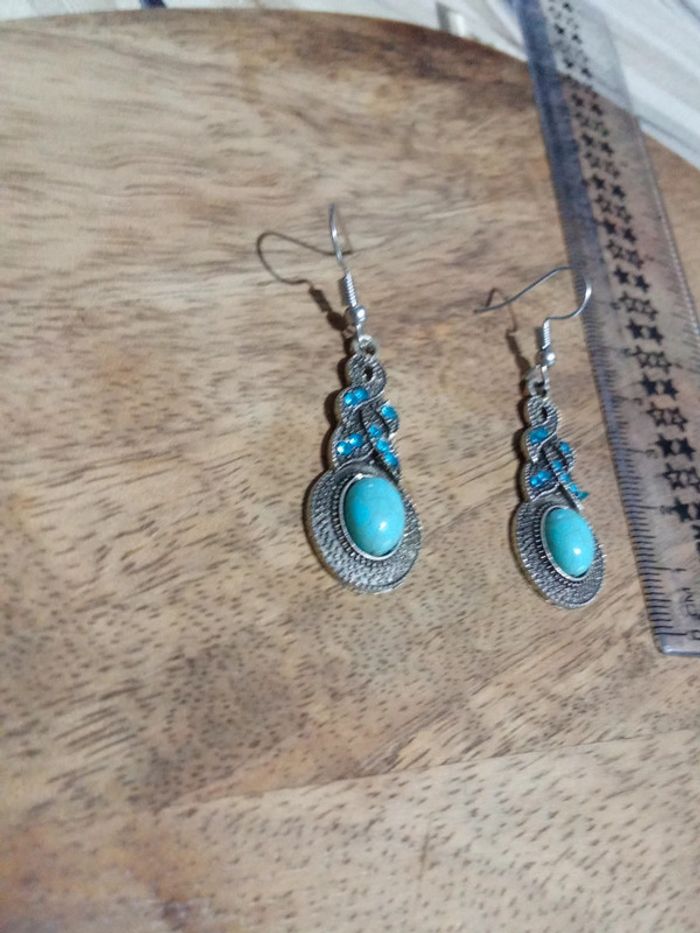 Boucles d'oreilles pendante style turquoise au niveau des pierres - photo numéro 1