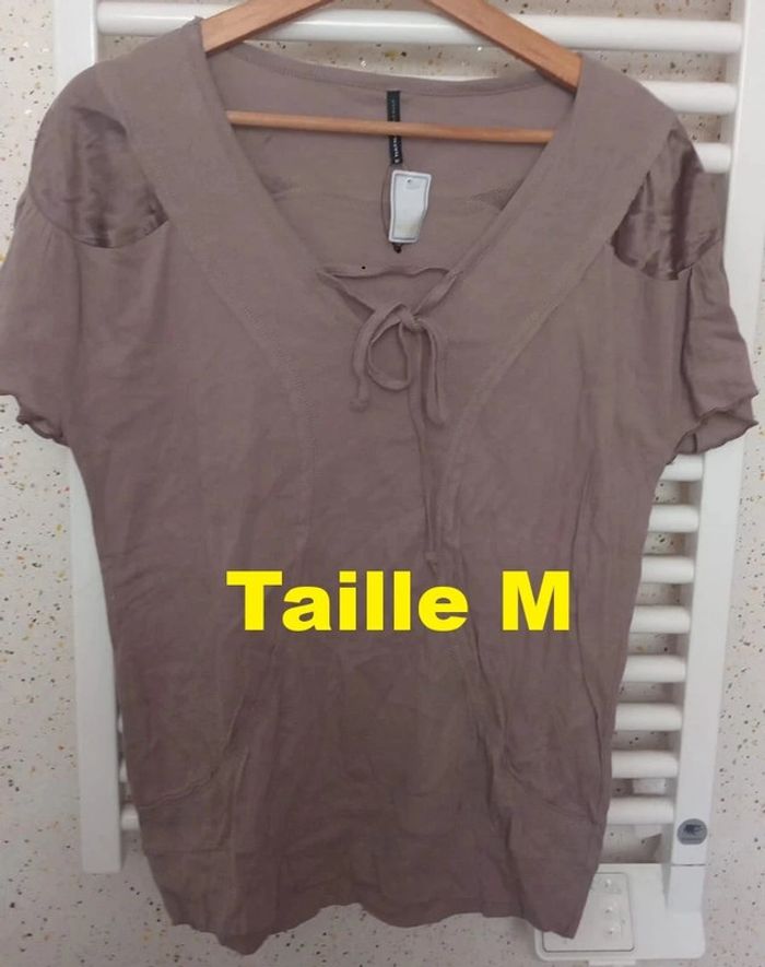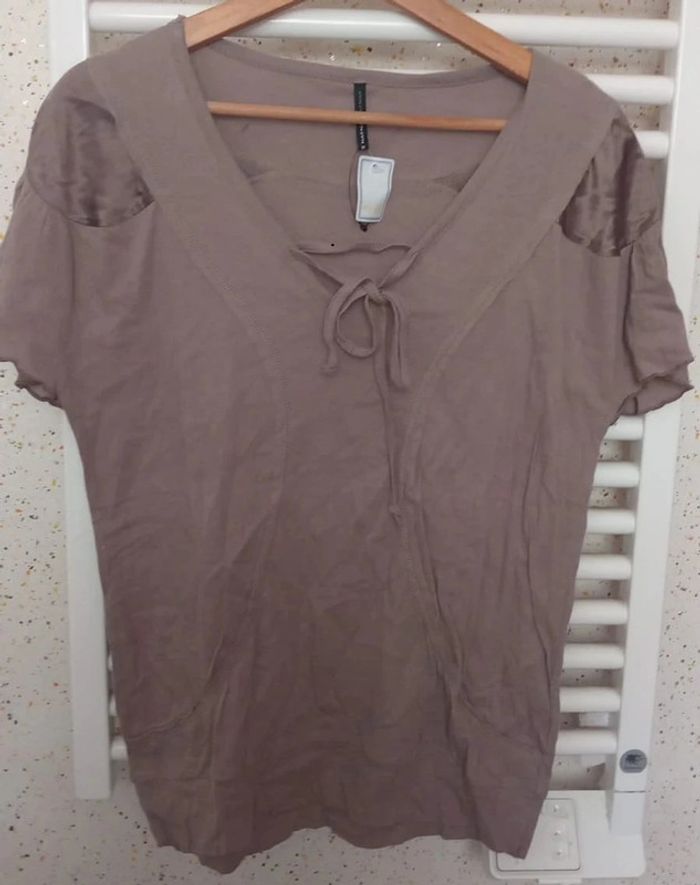 Tee shirt manche court marron / beige Naf Naf Taille M