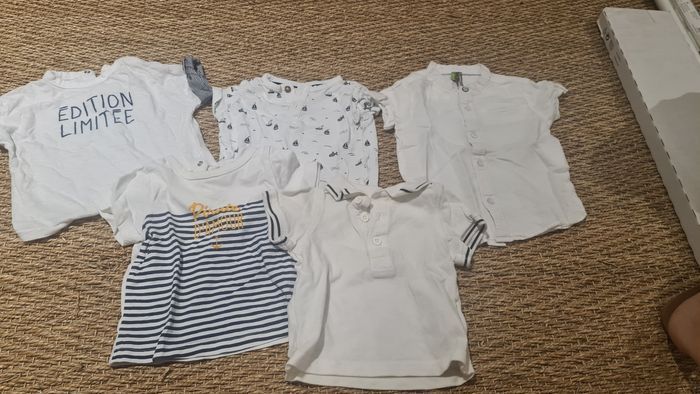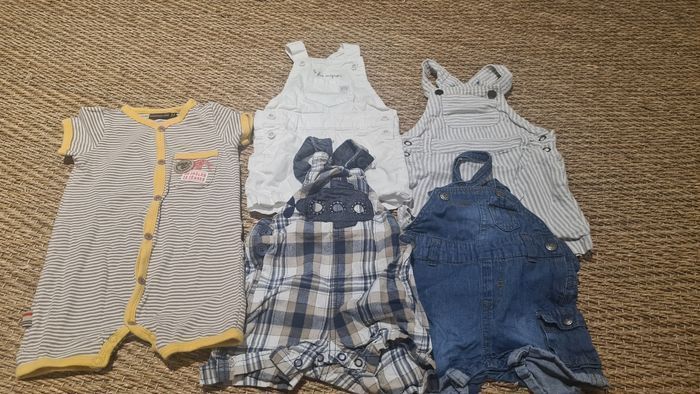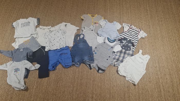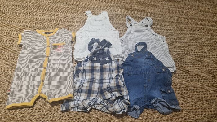 Lot en taille 6 mois : 20 pièces 2 bodys manches longues de chez petit bateau en excellent état 3 t shirts manches courtes 2 de chez tape à l'œil en excellent état 1 de chez kiabi en très bon état 1 chemisette manches courtes blanche de chez orchestra en excellent état 1 polo manche courte de chez kiabi en très bon état 2 ensembles salopettes t shirts manches courtes : 1 de chez elle est ou la mer en très bon état 1 de chez terre de marins en excellent etat 1 ensemble barboteuse et t shirt manches courtes de chez absorba en très bon état 4 salopettes 1 en jean léger de chez kiabi en excellent état 1 à rayures grises et blanches de chez orchestra en excellent état 1 blanche de chez mes petits cailloux en très bon état 1 à carreaux et motif sous marin de marque inconnu en excellent état 1 combishort rayé de chez Sergent Major en excellent état 1 bermuda de chez week-end à la mer en excellent état 1 pantalon style sarouel de chez tape a l'œil en excellent état