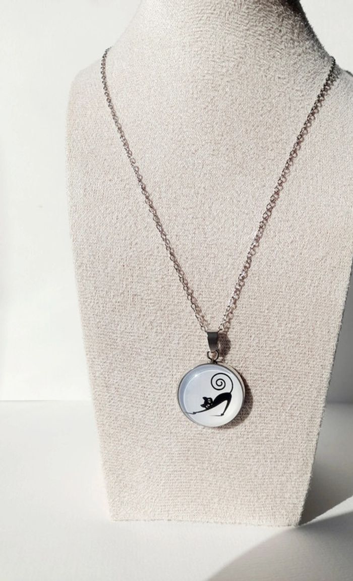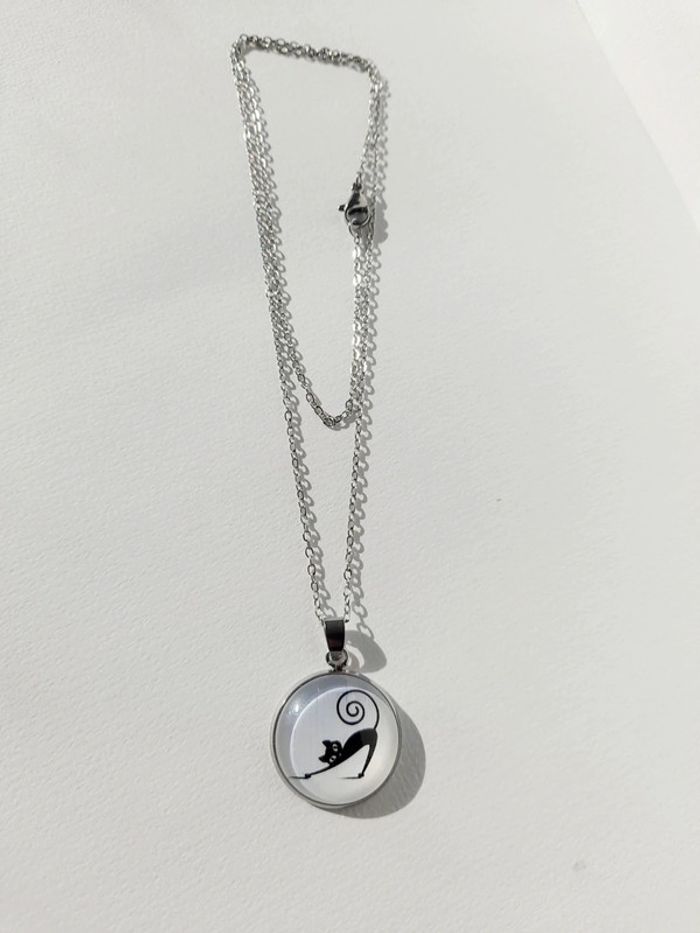Neuf 50cm Pendentif et chaine acier inoxydable et verre. N hésitez pas si vous souhaitez un autre cabochon ou un autre cordon #arsedian_neuf #atsedian_bijoux #chatnoir #idéecadeau #bijouxchat #acierinoxydableargenté