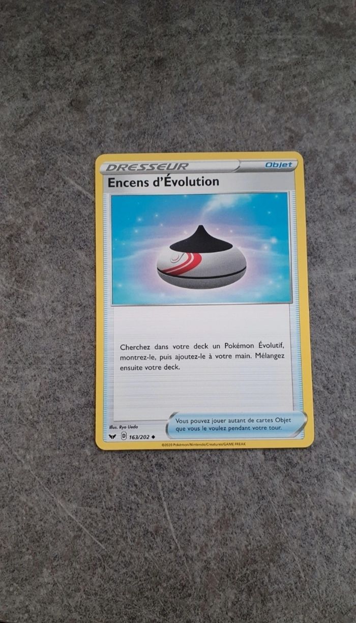 Je vends cette carte dresseur Pokémon "Encens d'Évolution", une carte rare et recherchée par les collectionneurs. - Type de produit : Carte à collectionner Pokémon - Nom de la carte : Encens d'Évolution - Édition : Carte dresseur 163/202 État neuf N'hésitez pas à me contacter pour plus d'informations ou de photos