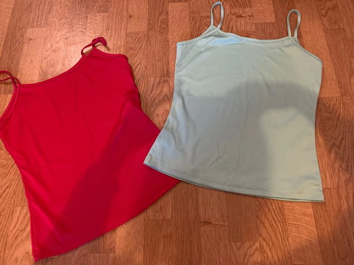Un fushia et bleu turquoise taille s/m ma fille a coupé les étiquettes tbe