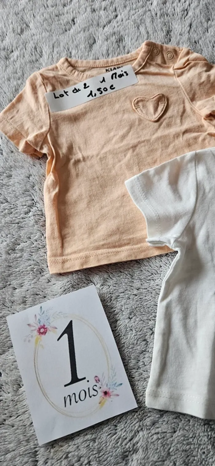 Lot 2 tee-shirt coeur 1 mois