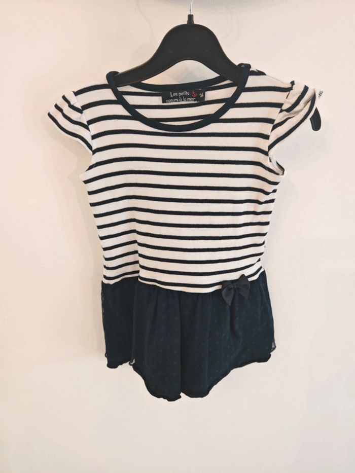 Jolie robe d'été marinière avec un flot, jupe en tulle. Taille 3 ans. Marque : les petits coeurs à la mer Comme neuve ↪️ N'hésitez pas à créer un lot pour obtenir une réduction 🤗