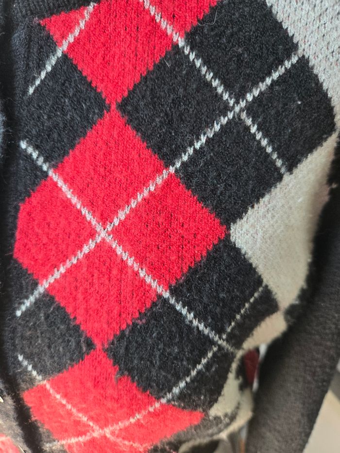 #XSfemme_tatianaalena Jolie gilet en laine a carreaux Marque ◼️: Kiabi Taille 📏 : taille XS État 🏷️: tres bon état Couleur 🎨 : Noir / Rouge
