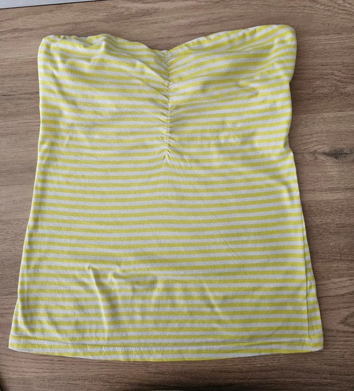 Haut s s bretelles / top jaune blanc à rayures fille - photo numéro 4
