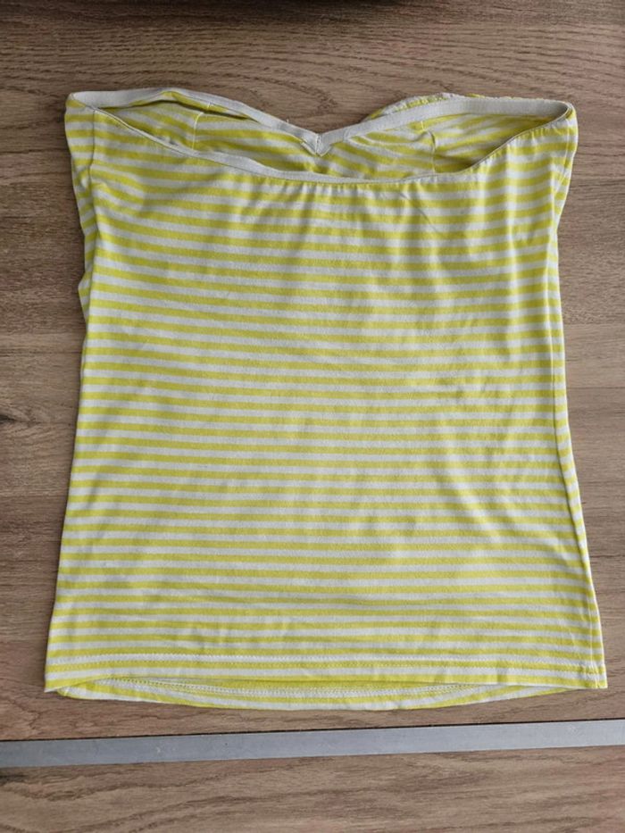 Haut s s bretelles / top jaune blanc à rayures fille - photo numéro 6