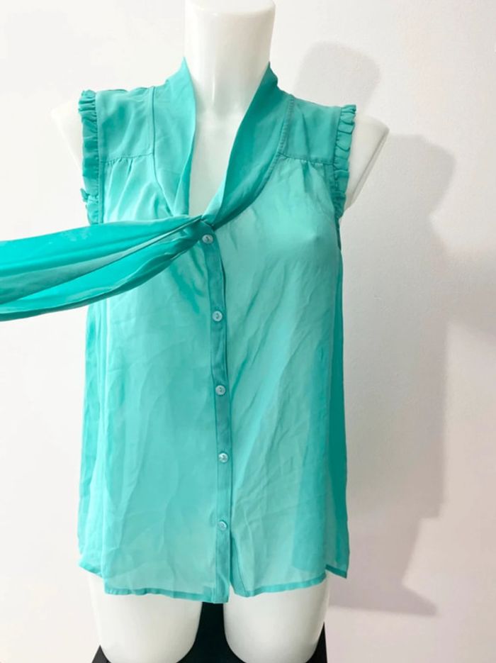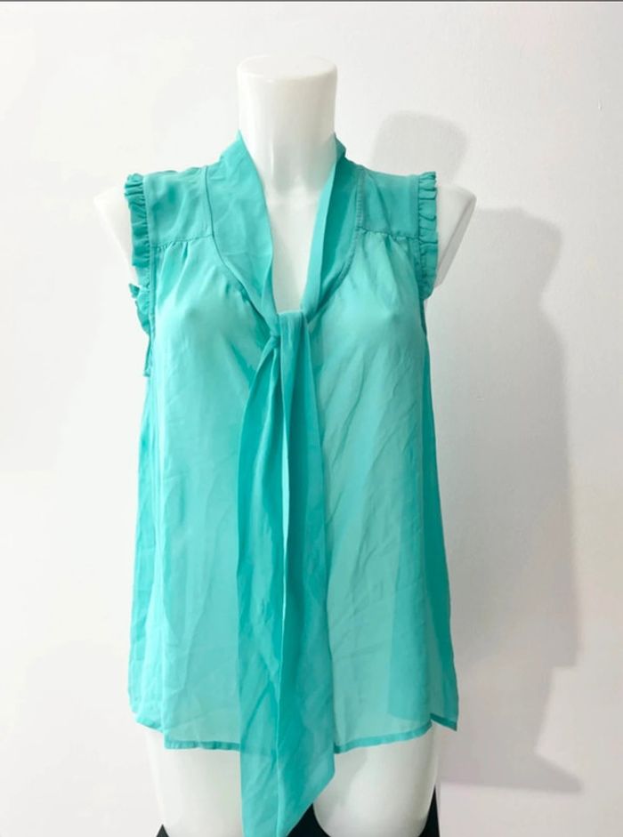 Blouse transparente turquoise Forever 21 Taille M tres bon état #celdjifemme #celdjihauts #celdjitm pour voir tous les articles en M, réduction sur les lots