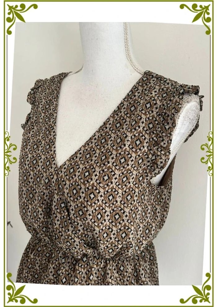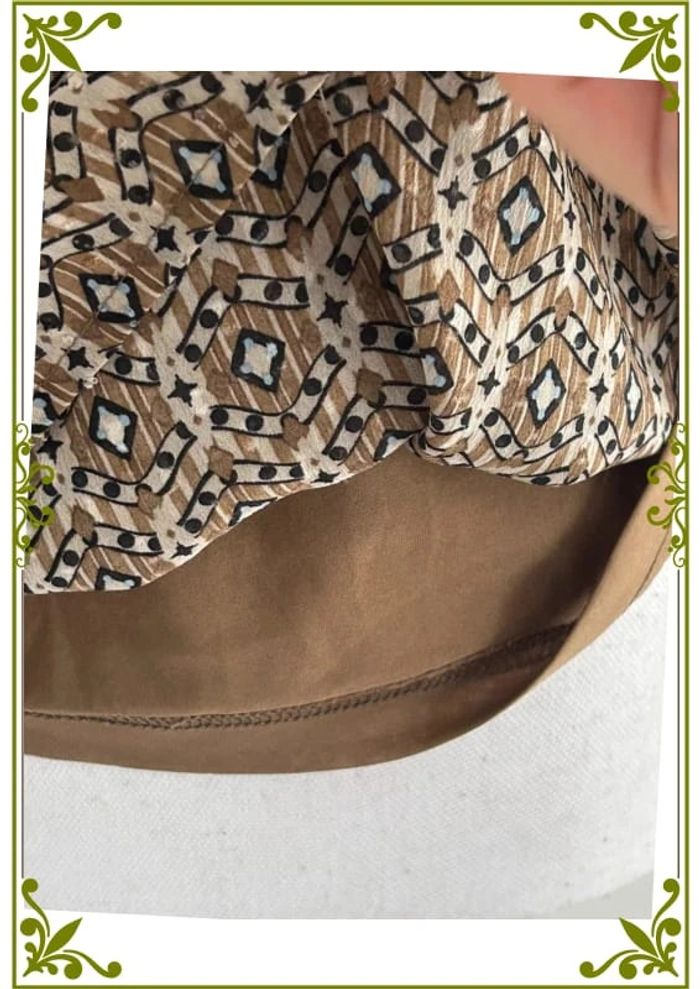 📌 Description : 👕 Type : Blouse manches courtes 📏 Taille : 40 🎨 Couleur : Marron avec imprimé ethnique 👒 Style : Bohème / chic 🪡 Détails : • Décolleté en V • Manches courtes • Doublée pour plus de confort 💎 État : Excellent ✅ 💬 Description : Très jolie blouse Cache Cache, parfaite pour un style bohème chic ✨. Son imprimé ethnique et sa teinte marron en font une pièce tendance et facile à associer. Le tissu est doublé pour un tombé impeccable et un confort optimal. ✔️ Coupe flatteuse ✔️ Comme neuve 📦 Envoi rapide et soigné #BlouseCacheCache #Taille40 #StyleEthnique #ModeFemme #SecondeMain #VintedFrance #LookBohème #ÉtéChic #L49