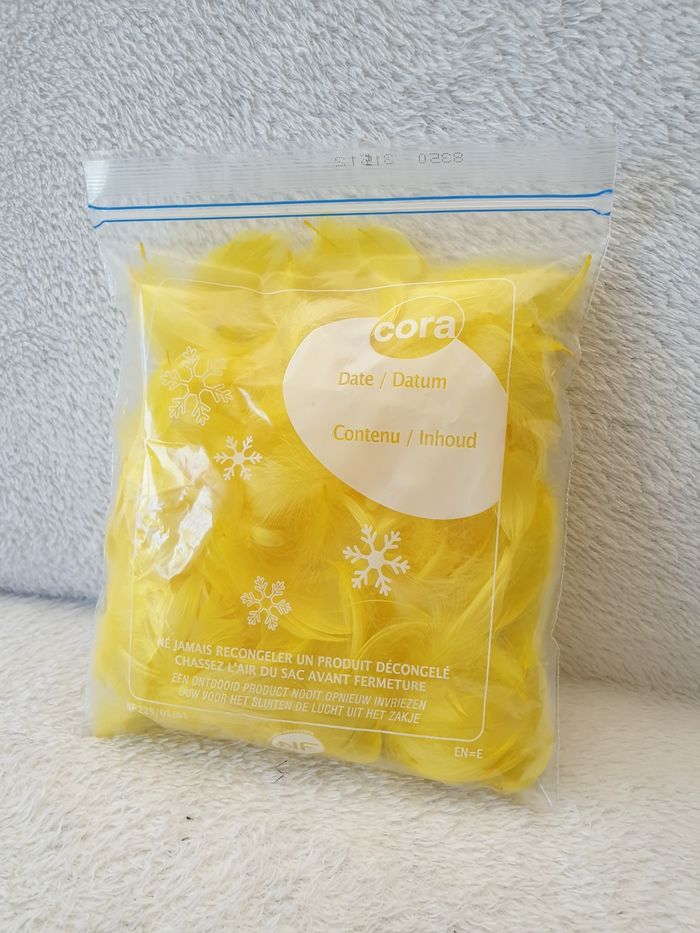 Sac de plumes jaunes