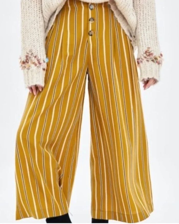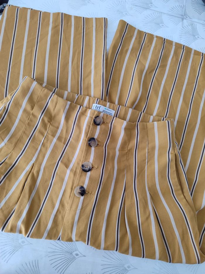 Pantalon court large à rayures en Tencel taille haute - photo numéro 1